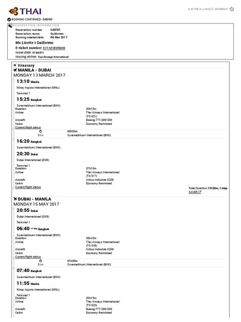 Thai Airways Ticket Check